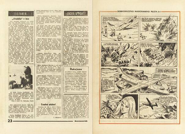 Jednou z pravidelných rubrík časopisu bola LISTÁREŇ a francúzsky komiks DOBRODRUŽSTVO MASKOVANÉHO PILOTA Scenár písal T. Santi a ilustrácie zabezpečil A. Chéret.