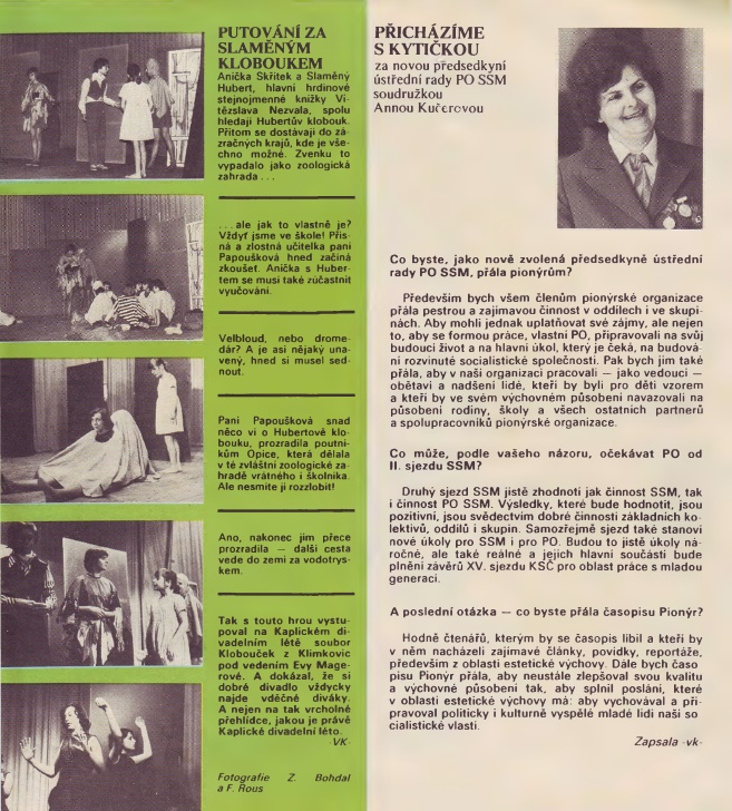 Oblíbenou dvoustranou byl jakýsi “fotokomiks” – seznámení s novým filmem, který se v tu dobu dal shlédnout v československých kinech. Stručný děj filmu byl odvyprávěn popisky pod fotografiemi: