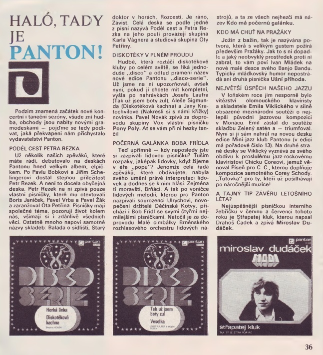 Dlouhodobá spolupráce tehdejšího hudebního vydavatelství Panton a časopisu PIONÝR se promítla do pravidelné rubriky HALÓ, TADY JE PANTON!