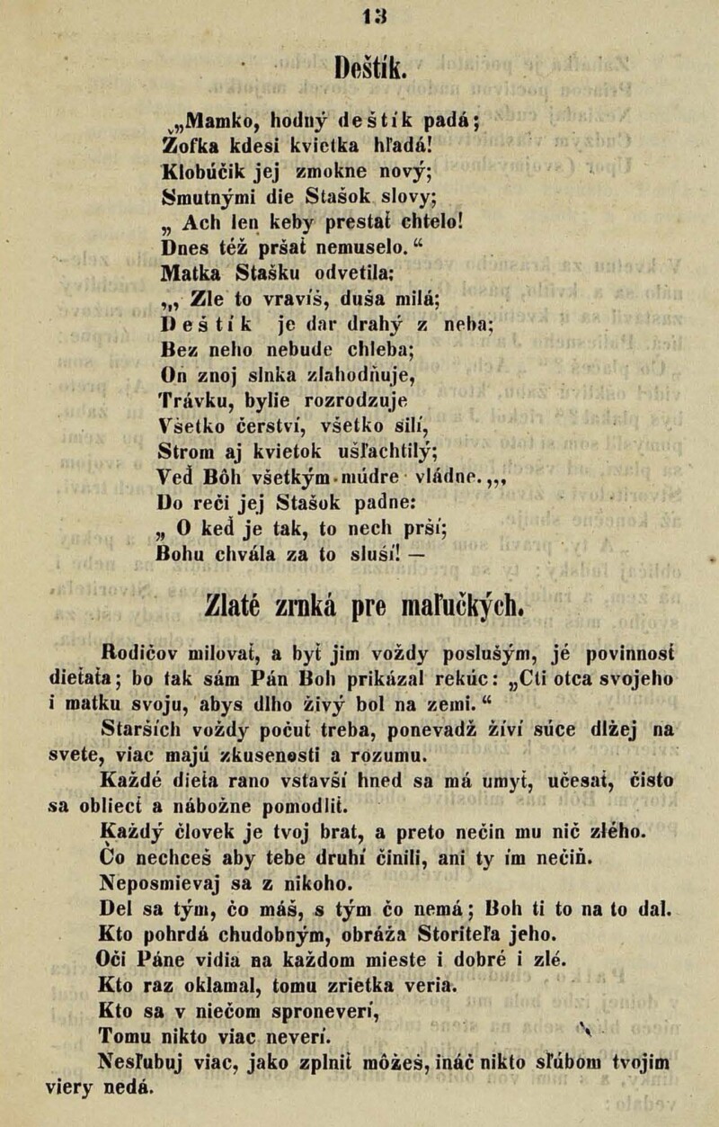 Slováci-Bratia! Len z čistej a horúcej lásky k národu svojmu slovenskému s ktorou už 20 rokov z usilovnou chuťou pracujeme na národu poli dedičnom, podujimajúce túto prácu novú, čili radšej toto pokračovanie v diele pred rokom započatom, voláme k Vám z celého srdca mojho a zo všetkej sily svojej: Pre česť a blaho, pre život a spasenie. národa našeho prosíme Vás, ako sme už i vo zvesti svojom v čísle 22. „Pesťbudinských Vedomosti“ uverejnenom prosili, neopúšťajte nás a s nimi i Vás samých; ale radšej podporujte nás v diele tomto nesnadnom, kto ako môže, a „tak bežte s nami, aby sme základu dosiahli“, t j- tak pracujte, tak sa namáhajte, tak sa obetujte s námi, aby sme dosiahli, velikého a svätého cieľa svojho, ktory je: nábožno — mravno — národné vzdelanie nastávajúceho pokolenia slovenského.